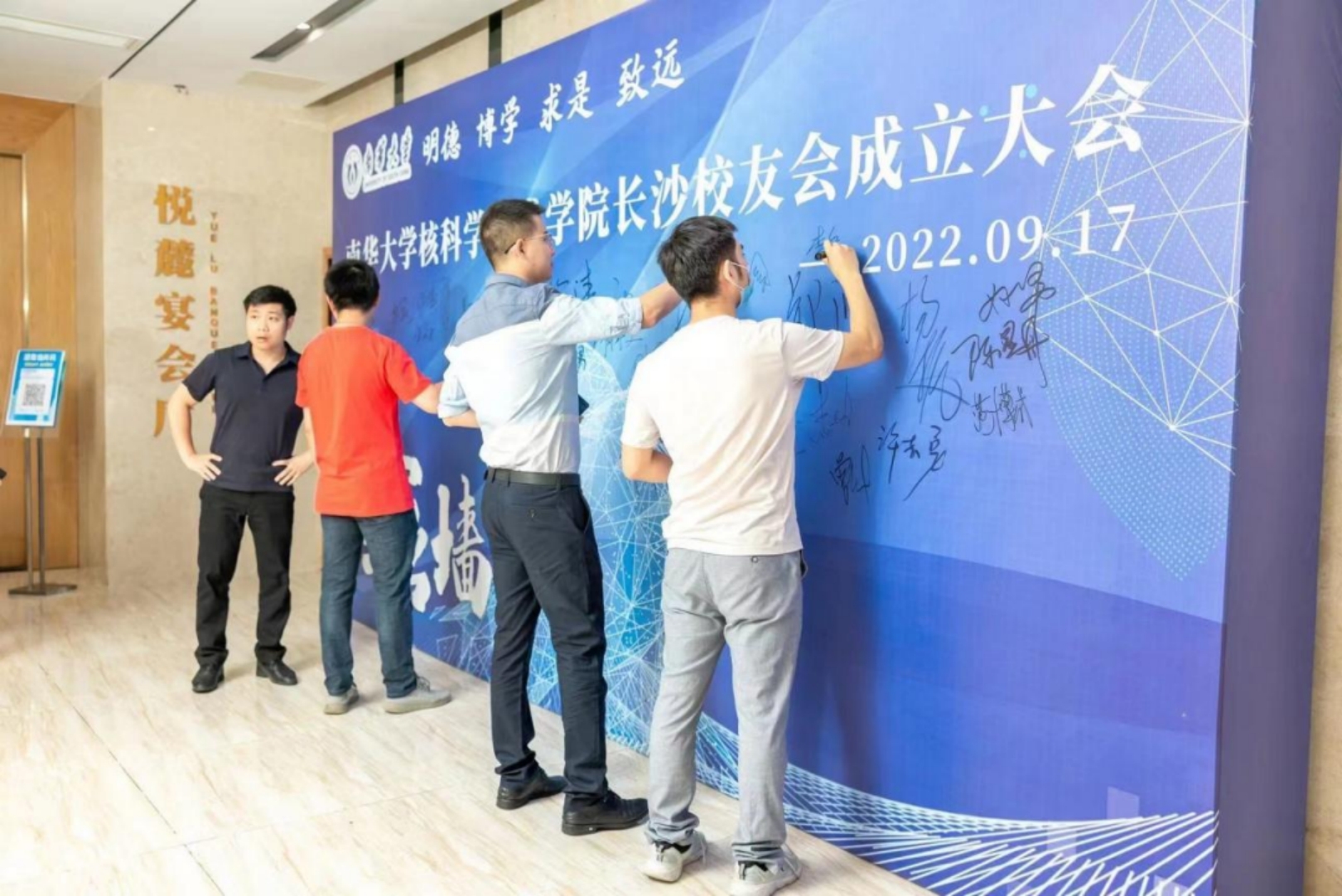 校友在签名墙上签名