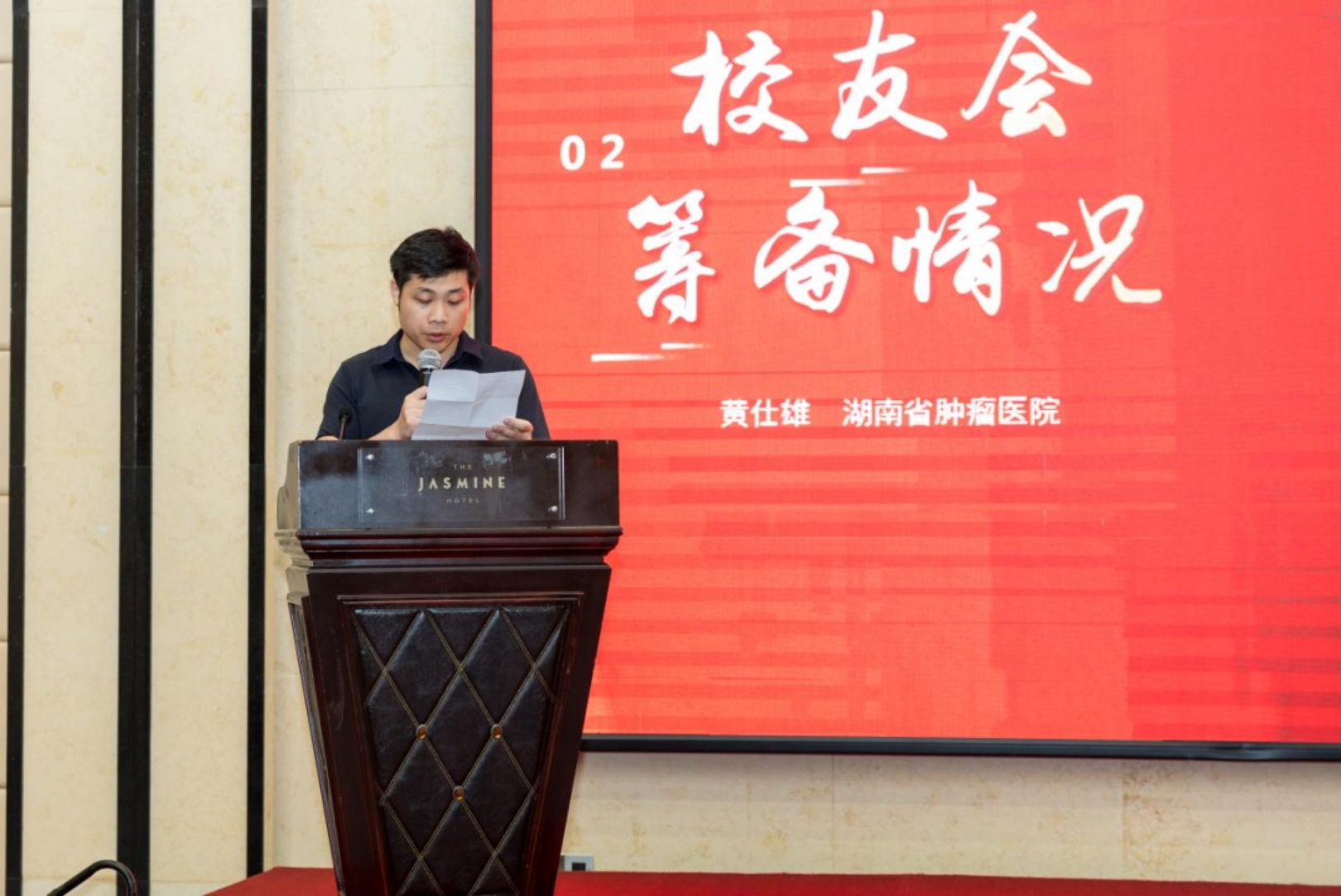 倪千喜校友介绍了出席大会的领导和嘉宾,黄仕雄校友代表长沙校友分会筹备组向大会汇报了PA官方平台核科学技术学院长沙校友分会筹备情况。