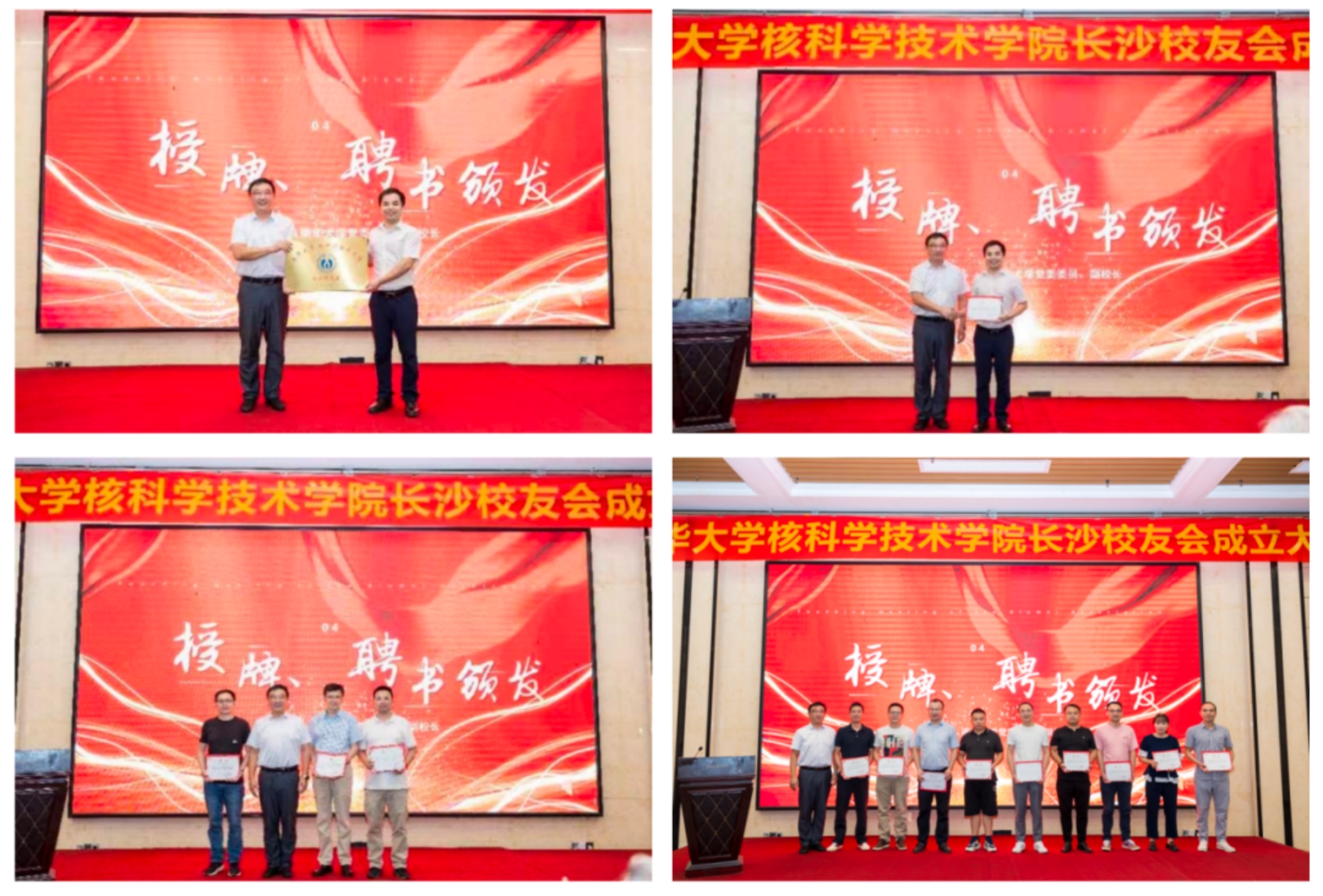 于涛为PA官方平台核科学技术学院长沙校友分会授牌,并为校友分会顾问、会长、副会长颁发了聘书。
