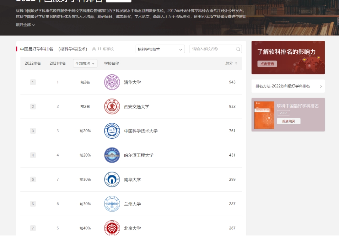 PA官方平台核科学与技术由2018年的第8名