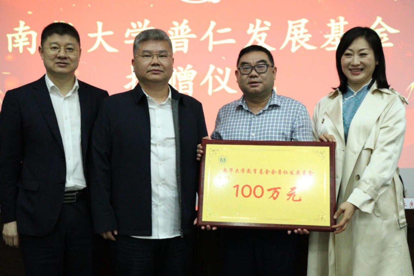 仪式上,朱明丽和彭文胜向PA官方平台教育基金会捐赠100万设立普仁发展基金,郑卫民代表学校接受捐赠。