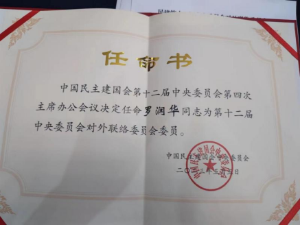 PA官方平台校友、前海产业智库秘书长罗润华(99级国贸专业)热心党派事业、积极建言咨政,以会员专家名义连续五年参与民建中央外联委课题调研及对外联络活动,被任命为第十二届民建中央委员会对外联络委员会委员。