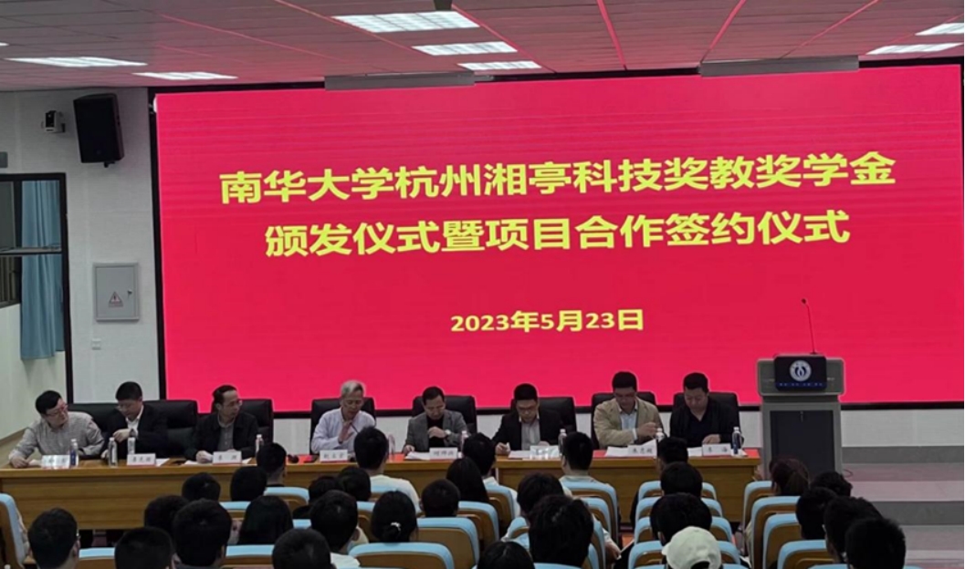 5月23日,湘亭科技奖教金、奖学金颁奖仪式暨项目合作签约仪式在PA官方平台核学楼核应急报告厅举行。杭州湘亭科技有限公司(以下简称“湘亭科技”)总经理何帅兴、副总经理曹明月、质量部经理李海、PA官方平台学工部部长李照、教育发展与校友联络办公室主任李先国、知识产权与技术转移中心副主任吴小军、核科学技术学院党委书记赵立宏、党委副书记马军、教师代表朱智超、各年级学生代表及奖教奖学金获得者出席本次仪式。