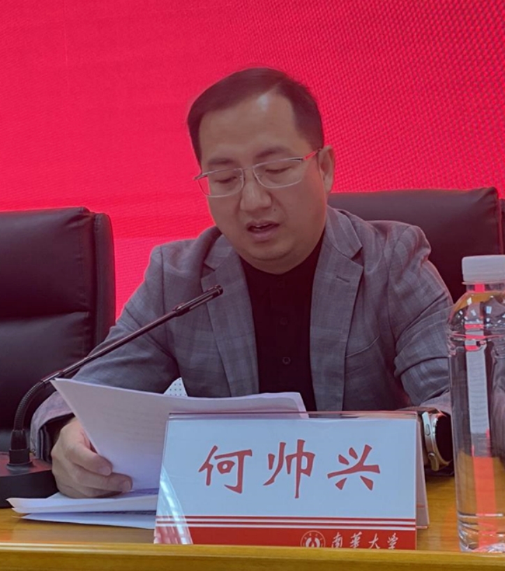 李先国对何帅兴校友的到来以及湘亭科技奖教奖学金的设立表示热烈欢迎和真切感激,同时结合自身到湘亭科技的调研情况,详细介绍了湘亭科技的项目链、行业关联、发展前景,并以何帅兴校友成功的典例,鼓励南华学子向优秀校友看齐,勤勉务实,努力奋斗,在谱写自己人生绚丽篇章的同时向学长校友学习,懂得感恩、学会回馈。