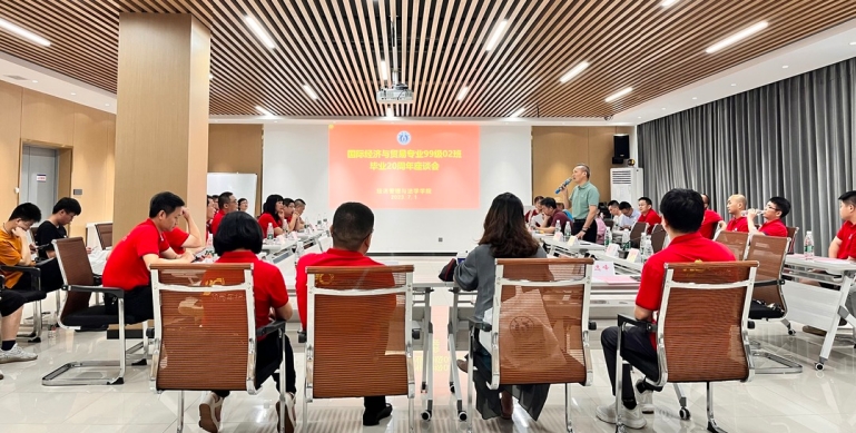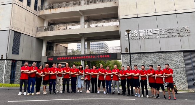 2023年7月1日,经济管理与法学学院国际经济与贸易专业99级02班校友,从全国各地回到母校,举行毕业20周年同学聚会活动,共同庆祝母校65周岁华诞,并为学校捐赠“平安南华”纪念摆件。