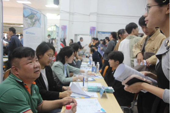 参加此次招聘会的企业涉及制造业、计算机、化工、教育、医药等多个行业领域。招聘会现场摩肩接踵,气氛热烈,秩序井然,在深圳市豪恩声学股份有限公司、深圳科士达科技股份有限公司、凤麟核科技有限公司、仁智云(广州)大数据科技有限公司等用人单位的展位前排起了长龙……参会同学在招聘单位前查看信息,咨询情况,积极与招聘单位负责人交流,负责人向毕业生们详细讲解当地岗位需求、薪酬福利等相关内容。