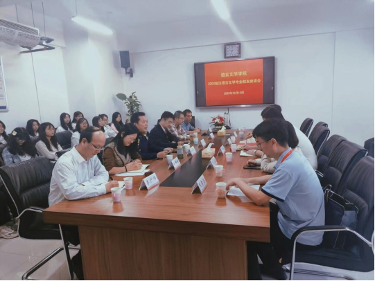 “爱上一所大学,就会爱上一座城。”2003级汉语言文学专业校友周鹏在座谈会上深情表白。值学校建校65周年之际,2003级汉语言文学专业刘数一、蔡晟、周鹏、段乐、陈望、周孝元等6名校友代表回到母校报到,于10月15日上午在崇礼楼北410会议室参加语言文学学院2003级汉语言文学专业校友座谈会。学院全体班子成员、教师代表和学生代表共同出席。校友们从自身成长经历勉励学弟学妹们,在如何做好职业规划上和在座学生进行深入交流。
