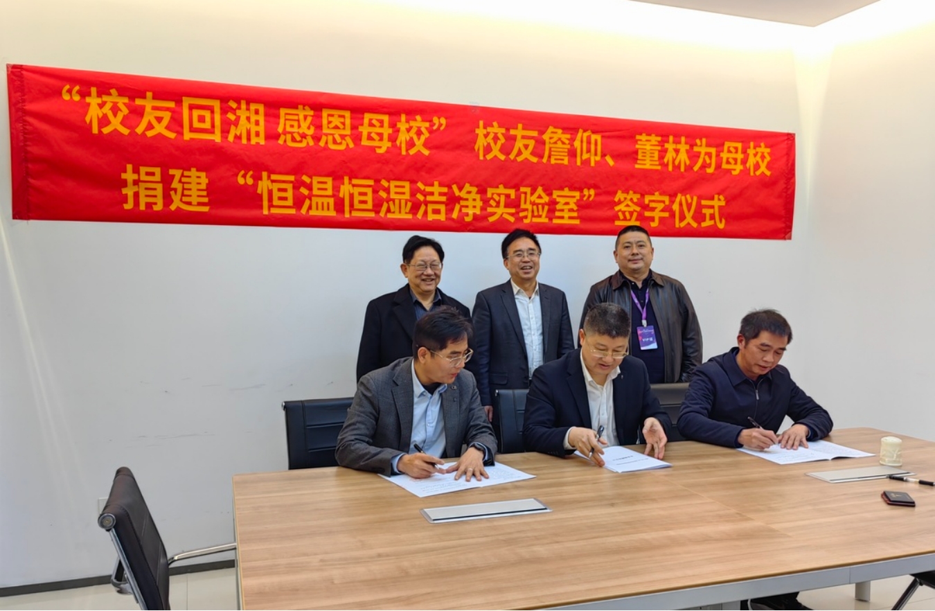 根据捐赠协议,深圳市怡净净化工程有限公司董事长詹仰校友(91级暖通)、唐山同海净化设备有限公司董事长董林校友(91级暖通)向母校捐赠价值一百万元的实验设备,建设“恒温恒湿洁净实验室”,用于支持教育教学、人才培养。