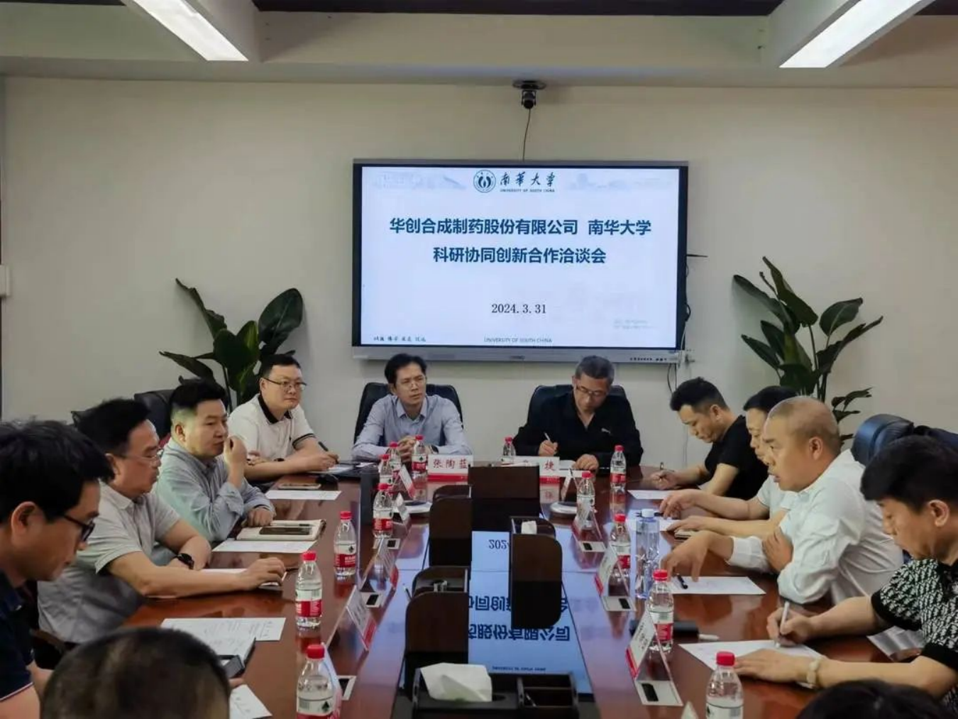 华创合成制药股份有限公司总经理贾树田、常务副总经理梅圣亮、副总经理强建华、施维,学校教育发展与校友联络办公室主任李先国、知识产权与技术转移中心主任吴小军,附属第一医院执行院长唐惠芳,附属第二医院副院长肖启国,附属南华医院党委委员、核工业卫校党总支书记欧军以及附属医院药剂科相关负责人参加座谈。