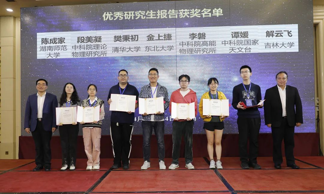 本次会议设置了1个主会场和7个分会场,共进行了23场大会特邀报告和287场分会场报告。参会报告人围绕经典与量子引力理论、引力实验、黑洞物理、引力波、核天体物理、暗物质和暗能量、多信使天文学、宇宙学等领域前沿问题,交流最新研究成果和进展,进行广泛而深入的思想碰撞,取得了丰硕的成果。闭幕式上,蔡荣根院士和张灼华教授为获得优秀研究生报告奖的7位同学颁发了获奖证书。