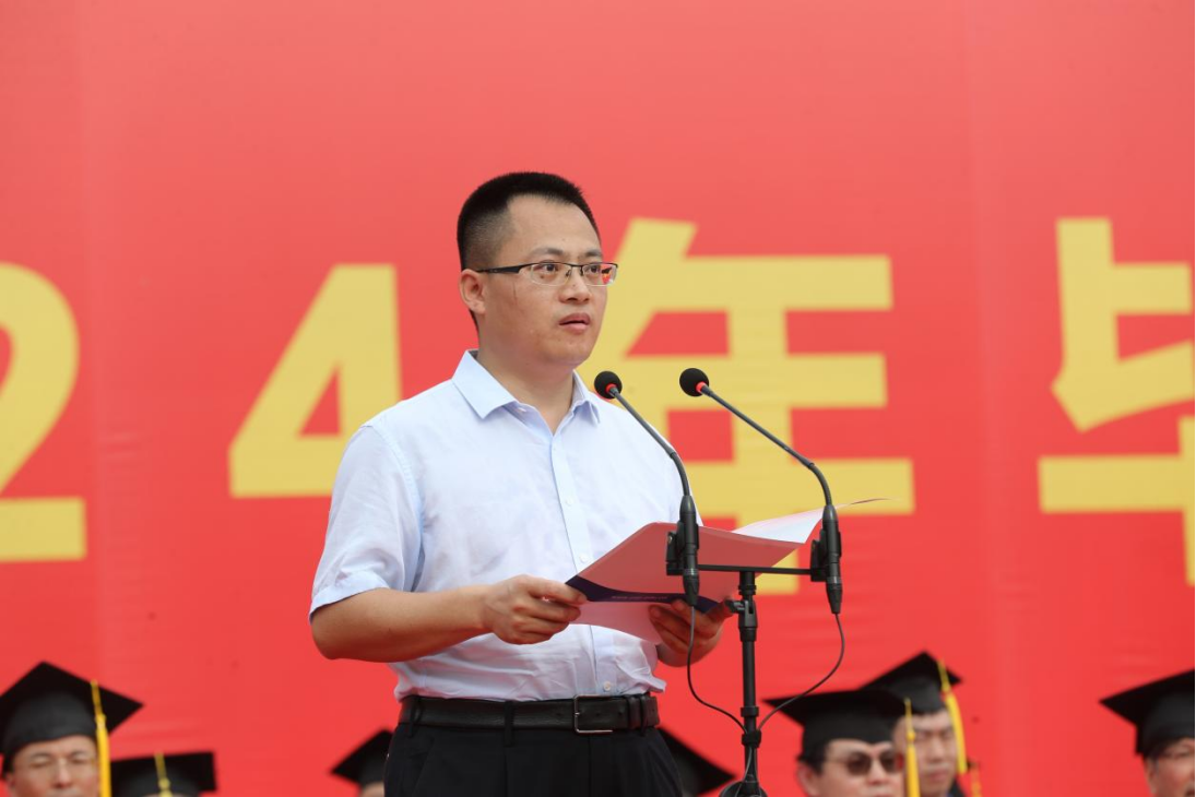 毕业生家长代表闫晓为毕业生们送上了最诚挚的祝福,向培养他们的南华表示诚挚的感谢,他嘱咐同学们,要锻炼好自己的身体,保持身心健康,要继续保持学习的习惯和对未知事物的好奇心,不断去探索新的领域,在未来的人生路上取得更大的成就。