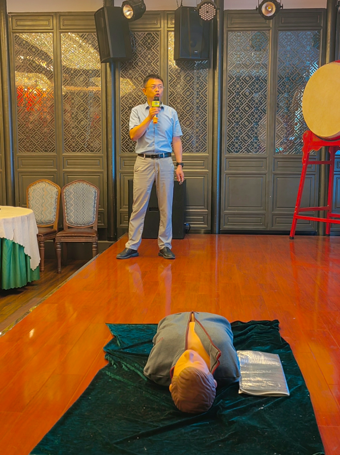 互动环节中,各位校友积极参与,并就日常生活中遇到的健康疑惑进行提问,如饮食调整、适量运动对预防心脑血管疾病的作用等,夏颂年一一耐心解答,现场气氛热烈而融洽。此外,讲座还特别安排了实操演示部分,夏颂年亲自指导大家如何正确进行心肺复苏(CPR)急救,确保每位参与者都能掌握这些关键时刻能救命的技能。