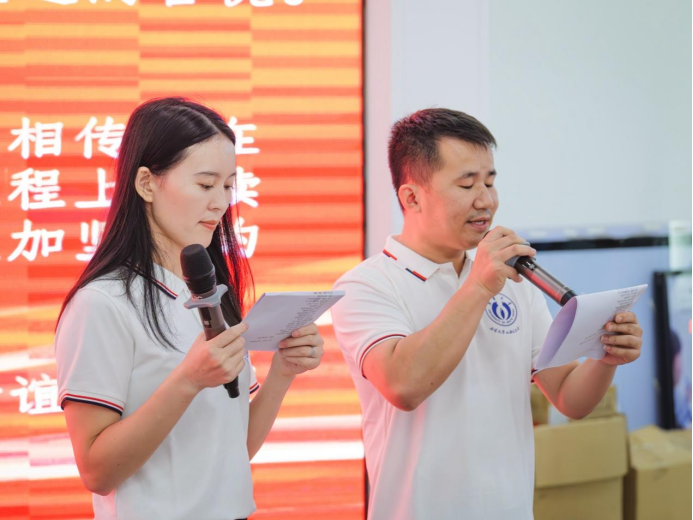 迎新大会在庄严的中华人民共和国国歌声中正式拉开帷幕。校友房昭雄、黄妍以诗朗诵形式,深情表达了对祖国的赞美与祝福,同时向新生表达热烈的欢迎,希望大家携手共进,共创辉煌未来。