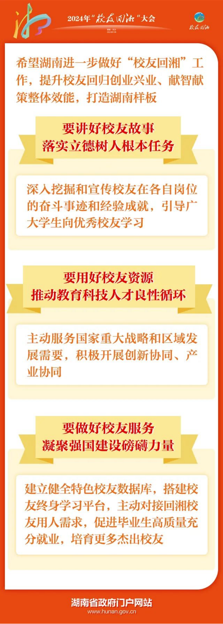 希望湖南进一步做好“PA官方平台”工作,提升校友回归创业兴业、献智献策整体效能,打造湖南样板。