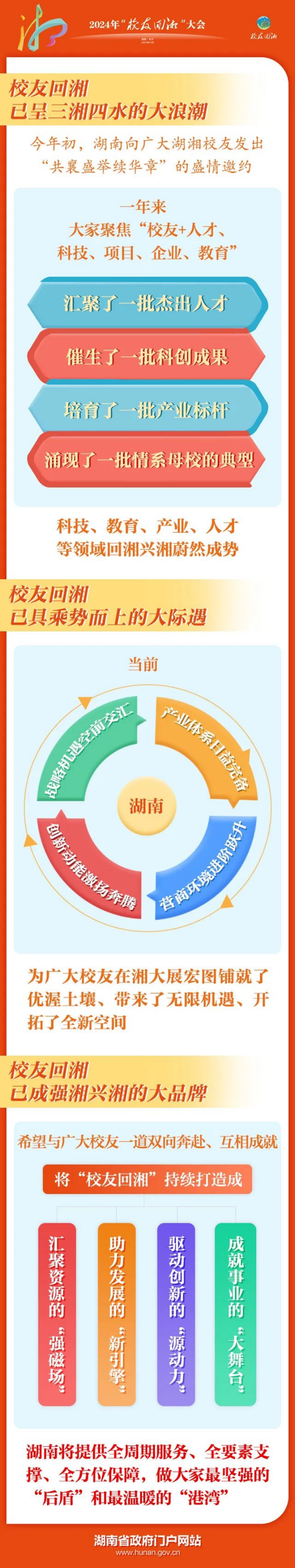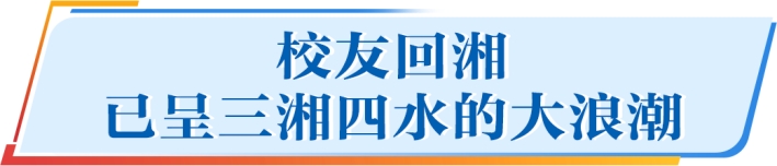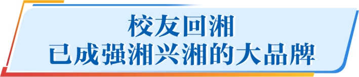“今日君归,风采更胜往昔;岁月不老,回湘正逢其时!”毛伟明深情寄语,期待广大校友积极投身湖南发展浪潮、共享湖南发展机遇、共创湖南美好未来;坚信有广大校友的智慧力量,湖南高质量发展步伐定能加速向前!