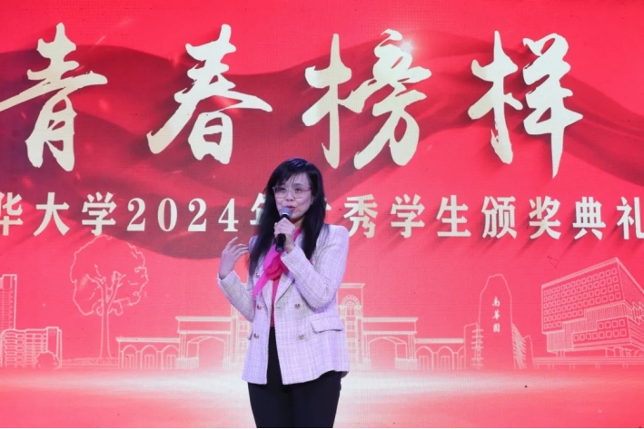 高山为“最美大学生”颁奖后,向全体获奖学生及学生集体表示热烈的祝贺,并向设立奖学金及关心支持学校发展、青年学子成长成才的校友们表示诚挚的谢意。他说,在南华这方热土上,一大批青年学子刻苦学习、砥砺奋斗,在学术研究、社会实践、体育竞赛等方面取得了骄人的成绩,以实际行动诠释了南华青年最美的模样,展示了青春榜样的力量。一代代南华学子,遍布祖国四面八方,始终秉持着南华精神,顽强拼搏、奋斗不息,在各行各业中树立了卓越的形象,以他们的智慧和汗水,为经济社会发展和国家事业贡献着南华的力量。“科教兴国,南华争先”,他号召广大南华学子向青春榜样学习,以实际行动践行南华学子的使命担当,将个人成长汇入祖国发展的大局,用奋斗书写无愧于时代的青春华章,共同助力南华在科教兴国的道路上走在前列!