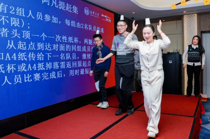 晚宴期间,互动游戏妙趣横生,幸运抽奖惊喜连连,知识竞答环节更是让现场气氛不断升温,而随后的主持人问答环节,紧紧围绕校史、校训展开。在主持人的引导下,大家纷纷回忆起在学校时候的美好岁月,满怀憧憬地谈论着母校如今的变迁。一问一答间,往昔的校园记忆被唤醒,对学校的深厚情感与强烈归属感油然而生。