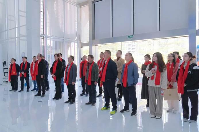 在主持人黄妍的引导下,校友们移步至横琴展厅,深入了解了横琴的发展历程与宏伟蓝图。参观结束后,全体校友在天沐琴台-天沐河畔合影留念,记录下这一难忘瞬间。