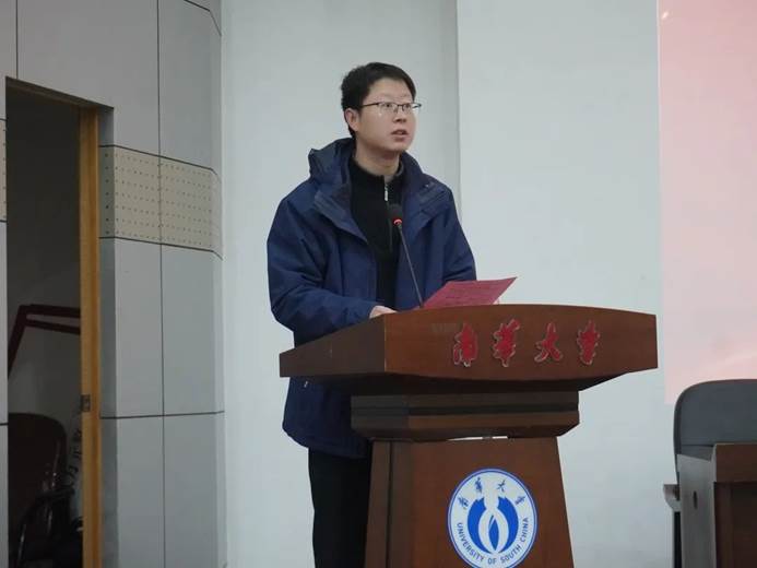 获奖学生代表环境工程专业2021级学生梁智铭向心系学生成长的每一位教师、校友、企业家以及爱心人士们致以最崇高的敬意和最真挚的谢意。他情感真挚的言语间流露出对未来的憧憬和对帮助过自己的人的感激,其坚定而有力的声音让在场的每一个人都感受到了南华学子的坚韧与抱负。