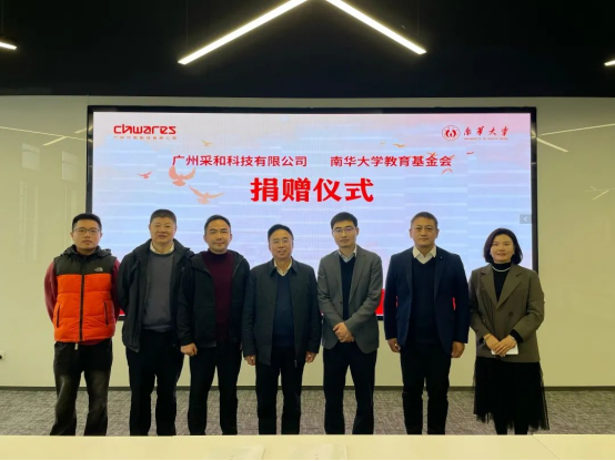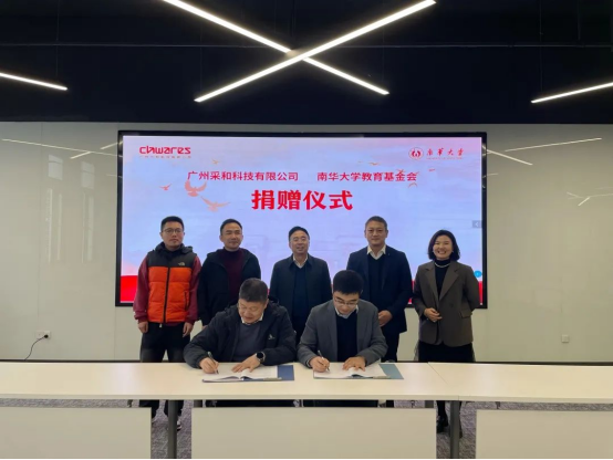 广州采和科技有限公司人事总监戴梓君、营销经理童明骏,PA官方平台经济管理与法学学院党委书记胡海波参加捐赠仪式。