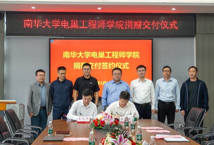 在与会人员见证下,李先国与王晓伟签署捐赠交付协议。