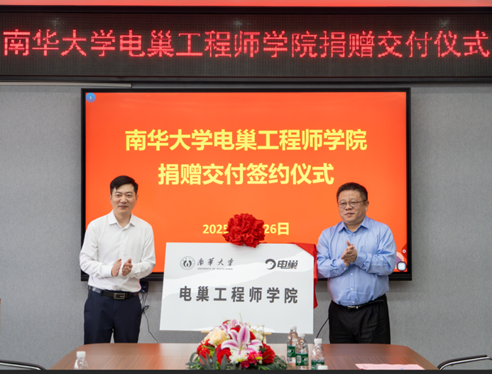 捐赠交付仪式上,夏昆对校友企业电巢科技的慷慨捐赠和鼎力支持表示诚挚感谢。他指出,电巢工程师学院的成立是学校在推进产教融合、科教融汇道路上迈出的坚实步伐,也是学校深化教育教学改革、提升人才培养质量的关键举措。他强调,学校将充分利用电巢科技在元宇宙技术、电子产业工程技术及职业培训方面的优质资源,与电巢科技紧密携手,共同打造具有南华鲜明特色的虚拟工程师学院,为师生提供更加先进、高效的教学和实践平台。同时,他也希望双方能够在未来的人才培养、产业研发、人工智能等领域开展更深入合作,为培养更多适应新时代要求的高素质人才而不懈努力。
