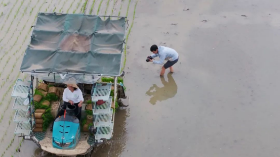 (蒋桢桢在水田里拍摄)