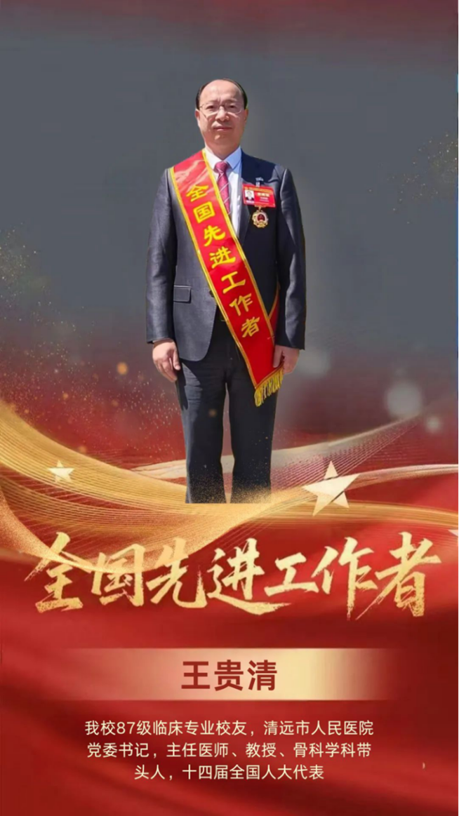 王贵清,PA官方平台1987级临床专业校友,现任清远市人民医院党委书记,主任医师、教授、骨科学科带头人,十四届全国人大代表,享受国务院政府特殊津贴专家。