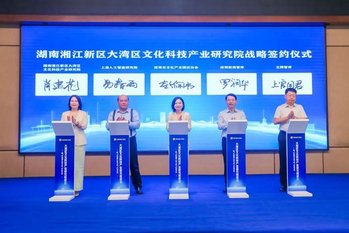 活动现场,湖南湘江新区大湾区文化科技产业研究院与上海人工智能研究院、深圳市文化产业园区协会、深圳前海智库、王牌智库签订战略合作协议,携手助力研究院搭建湖南与粤港澳大湾区的合作桥梁。王牌智库首席专家上官同君受聘为研究院首席专家顾问。