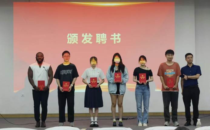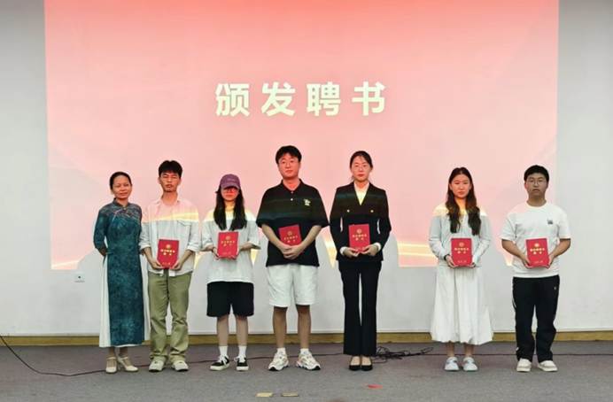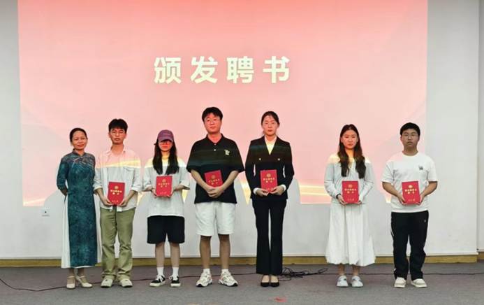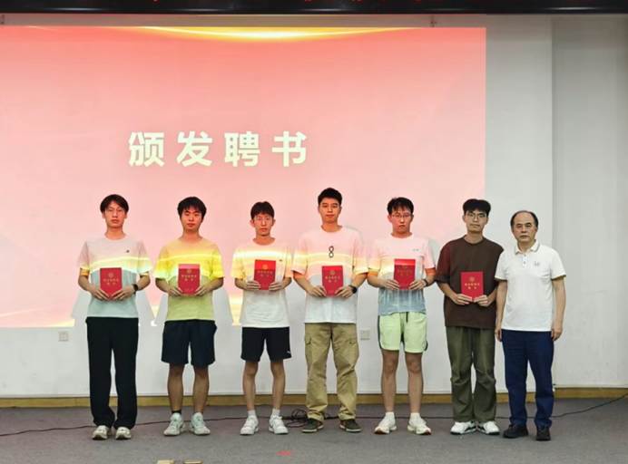 唐振平同研究生工作部部长马军、学生工作部副部长曾斌一起为2025届毕业生校友联络员代表颁发了聘书。