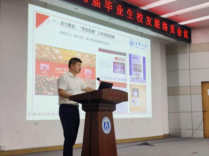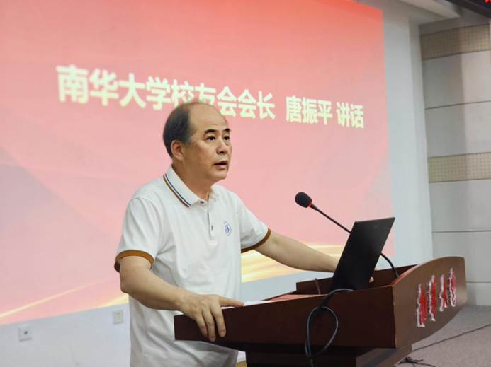 唐振平向刚选聘的341名2025届毕业生校友联络员表示衷心祝贺。他指出,校友是母校建设发展的亲历者、见证者、参与者、建设者,母校的声誉是系在校友脚踝上的铃铛,校友做得越好、走得越远,母校名声就传得越远、影响就越大。母校与校友是事业发展共同体、情感共同体以及荣誉共同体。他强调,校友工作联络员作为校友与母校沟通的桥梁纽带,希望大家勇于担当,用心、用情,系好南华校友情感链,切实当好母校的宣传员、信息员和组织员,凝聚起广大校友的爱校之情、助校之力、育人之魂,推动母校和校友事业高质量发展。
