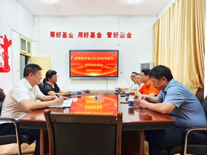 学校教育发展与校友联络办公室主任李先国、经济管理与法学学院院长李玉琼等与罗润华、卢大波及其团队进行了交流洽谈。
