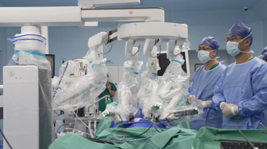 2024年8月,时隔一年多,易石坚带领团队再创医学奇迹,成功实施全国首例5G远程国产机器人甲状腺癌手术。