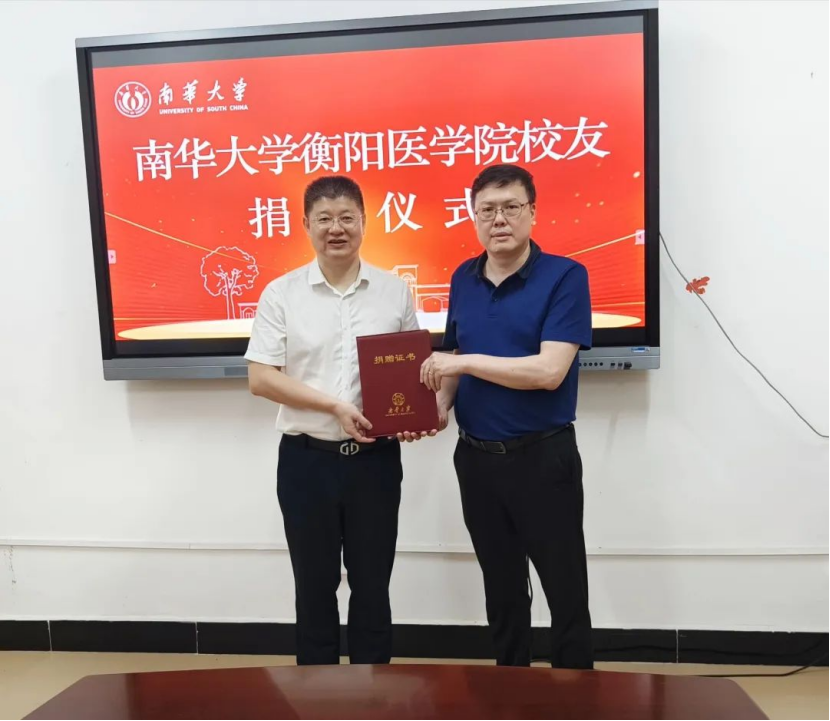 捐赠仪式上,周昵校友深情回顾了在南华的求学历程,感恩母校和恩师昔年来的悉心培养。他提到,母校“明德博学、求是致远”的校训始终是引导他前行的精神灯塔。此次捐赠不仅是对母校培育之恩的诚挚回馈,更希望通过支持母校医学教育、科学研究与创新实践,为国家医学人才培养与医疗技术革新注入动能。