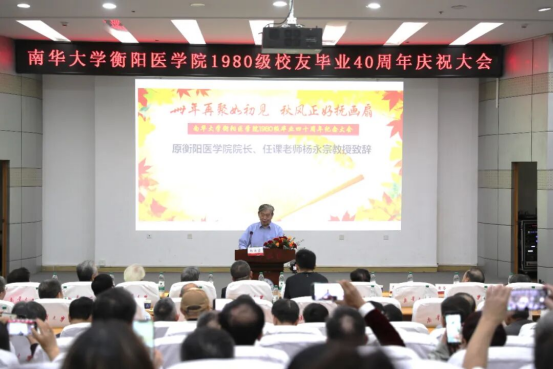 杨永宗教授在发言中高度赞誉了80级校友们在临床医学、科研攻关、医疗卫生管理等领域取得的卓越成就。他深情表示,“衡医80现象、明星80级”的校友们的成长与贡献是母校的荣耀,更是医学教育成效的生动诠释。他真诚祝愿大家身体健康、事业顺遂、家庭幸福,并与校友们定下“十年之约”,期盼毕业五十周年时再聚母校,共叙师生情谊。