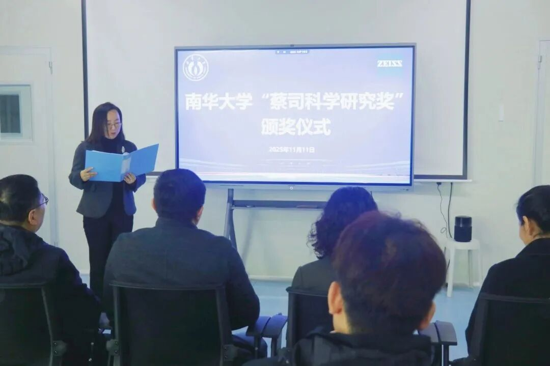 颁奖仪式的成功举办,既是对优秀学子努力成果的肯定,也充分展现了PA官方平台在推动学术交流、激励创新创造、深化校企合作方面的坚定决心。活动更进一步加深了校企双方的合作友谊,为未来双方在科研领域的深入合作奠定了坚实基础。相信在蔡司公司的支持下,PA官方平台的科研事业将迈上新的台阶,为科学进步培养更多优秀的创新人才和科研成果,为服务国家战略需求和推动科技进步贡献南华人的一份力量。