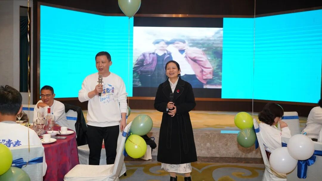 晚宴现场,校友们围坐畅谈,分享各自二十五年来的人生历程与职业感悟。辅导员马军老师的惊喜现身,更为活动增添了温暖与感动。他勉励大家继续坚守初心,在专业领域里持续精进。歌曲《以后的我们》《同桌的你》将现场气氛推向高潮。
