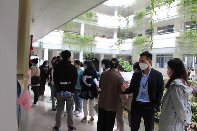 校友企业HR热情耐心介绍单位的情况,主动询问毕业生们的职业规划,并及时解答毕业生们的问题。