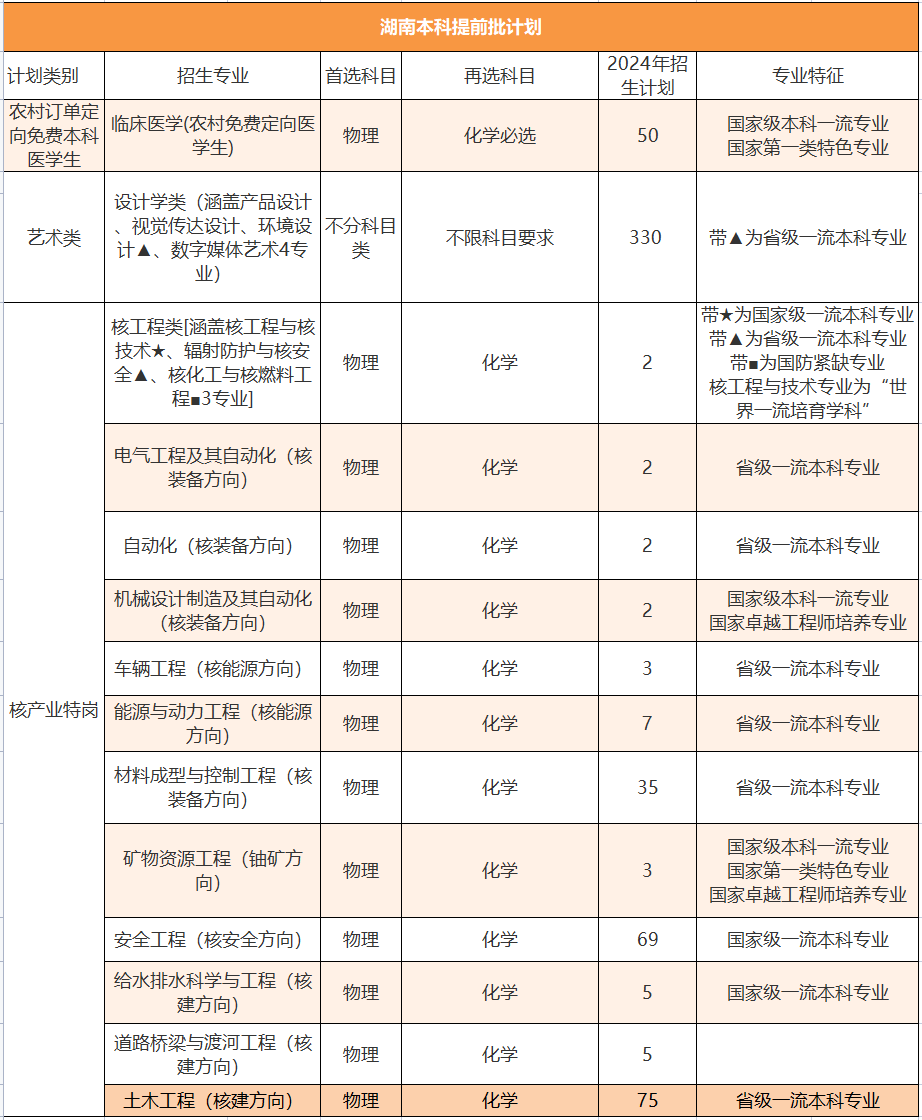 2024年,PA官方平台68个普通本科招生专业面向全国31省市区计划招生8870人,其中省外计划3327人,省内计划5404人,其他139人,学校在暂未实施高考综合改革省份实行本科一批招生。2024年学校在湖南省计划招生5404人,其中在本科提前批核产业特岗计划210人,艺术类考生330人,农村订单定向免费本科医学生50人,普通本科批普通类计划3594人,国家专项计划510人,地方农村专项计划710人。(最终招生计划及专业分组以各省招生考试机构发布为准)