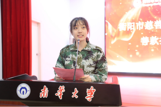 校党委委员、副校长姜志胜代表校党委行政向促成衡阳慈善总会南华分会成立的的相关部门和人士表示诚挚的感谢。他指出,南华分会作为湖南省高校中的第一个教育慈善分会,将在建设高水平大学的进程中,积极为衡阳培养输送更多优秀人才,为衡阳经济社会发展贡献更多南华力量。同时,他希望同学们能懂得感恩、学会感恩,用爱心传递爱心、用爱心弘扬正能量,认真学习、努力成才、回报社会。