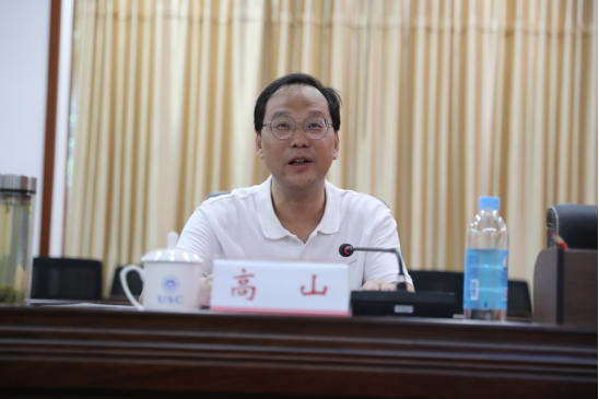 邓建军一行现场调研了“辐射-线粒体与人类重大疾病”国家重点实验室培育基地、环境医学与放射卫生研究所、肿瘤分子生物学与标志物实验室、国家高等学校学科创新引智计划“染色质结构和功能与相关疾病创新引智基地”、高性能激光应用联合实验室的科研及成果应用等情况。双方在第一办公楼视频会议室举行座谈会。会议由高山主持。